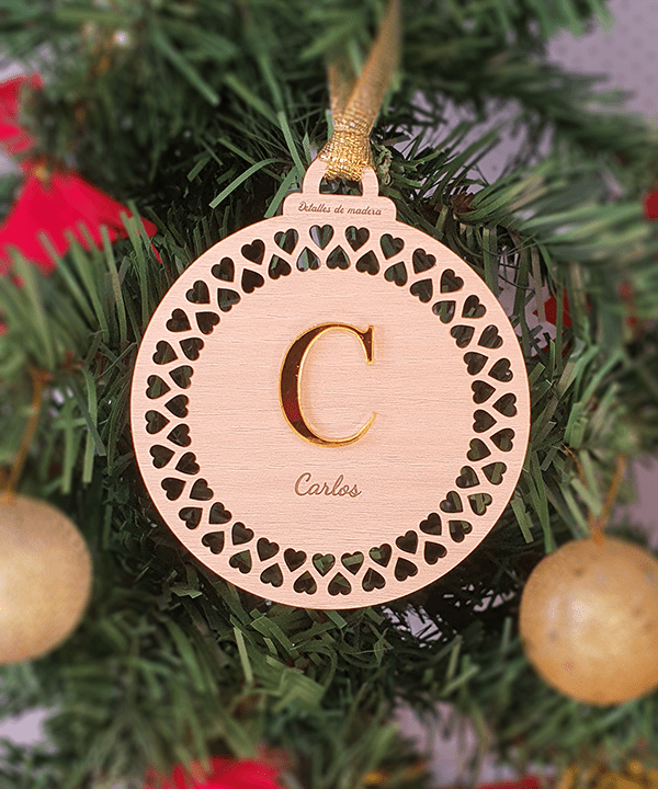 Bola de Navidad Personalizada Corazones con Inicial de Metacrilato