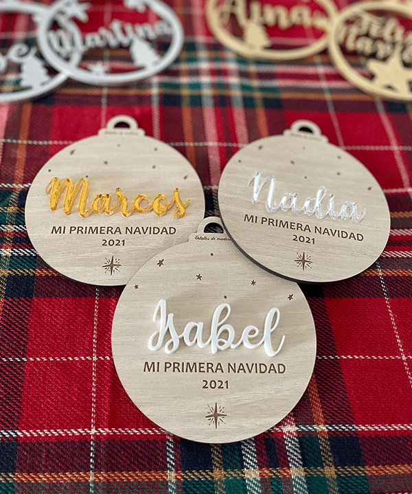 Bola de Navidad Personalizada – Mi primera Navidad Estrellitas – Con nombre de Metacrilato